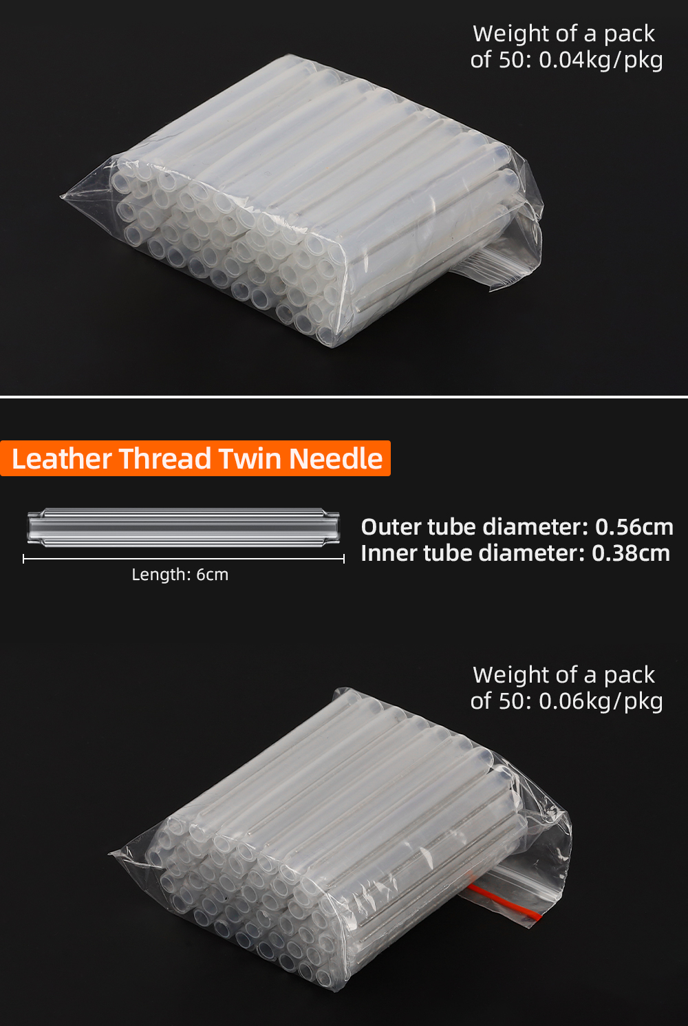 Coarse tube of leather thread (double needle)