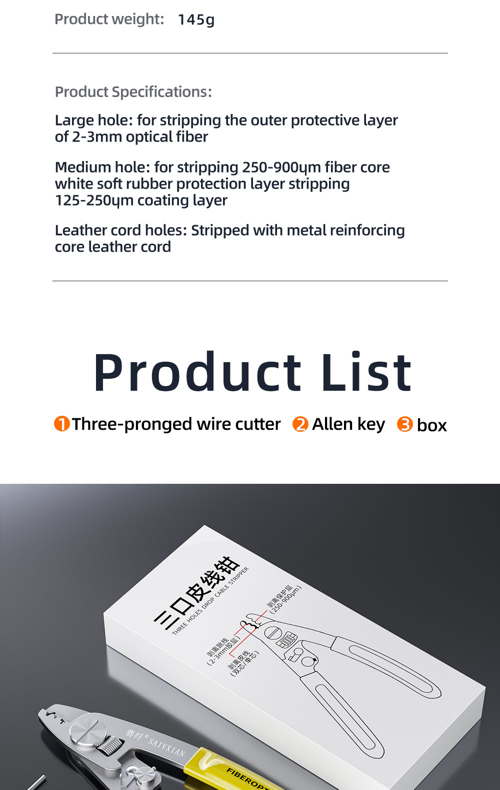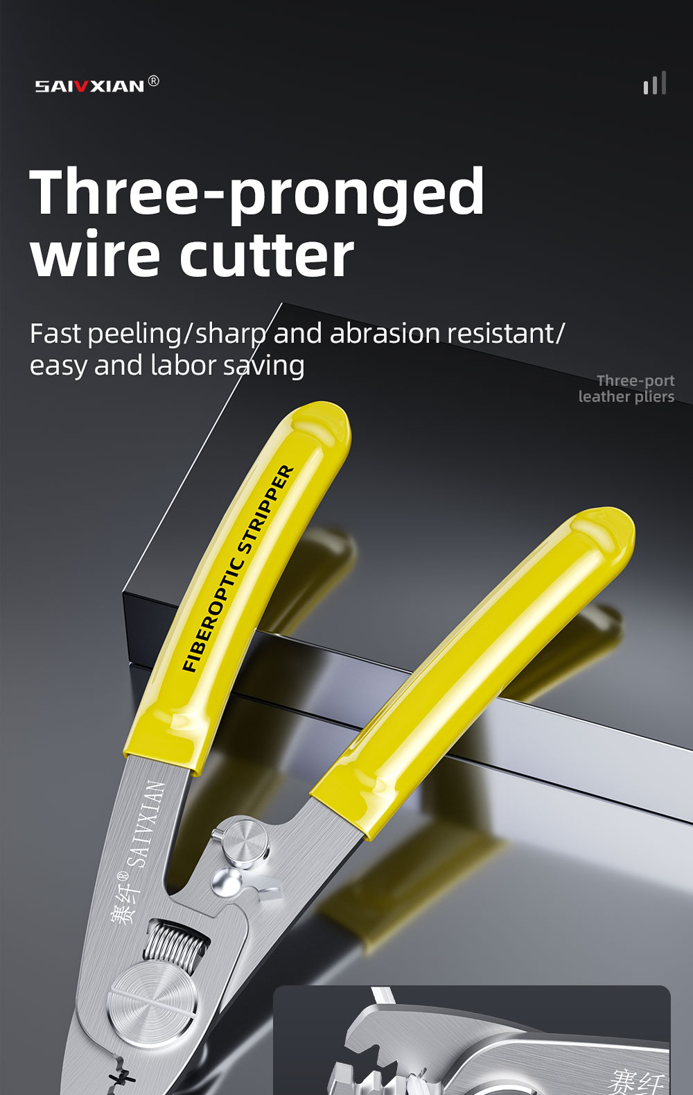 Three mouth fiber stripping pliers (high carbon steel)