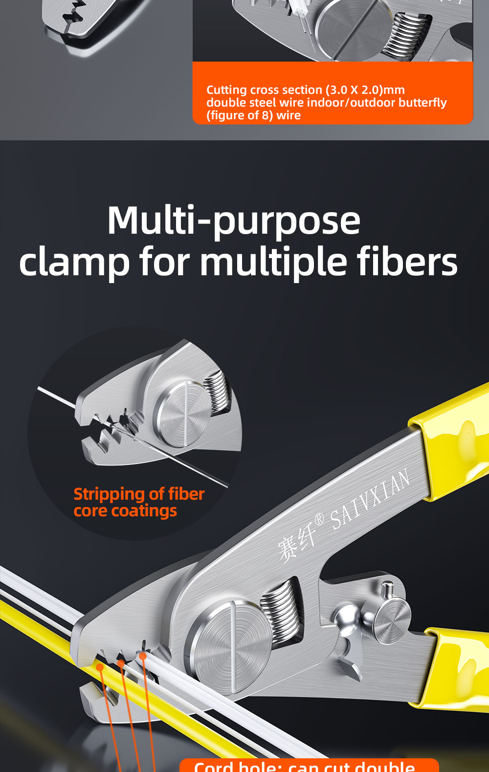 Double mouth fiber stripping pliers (high carbon steel)