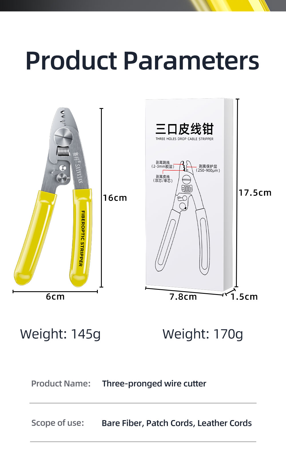 Three mouth fiber stripping pliers (stainless steel)